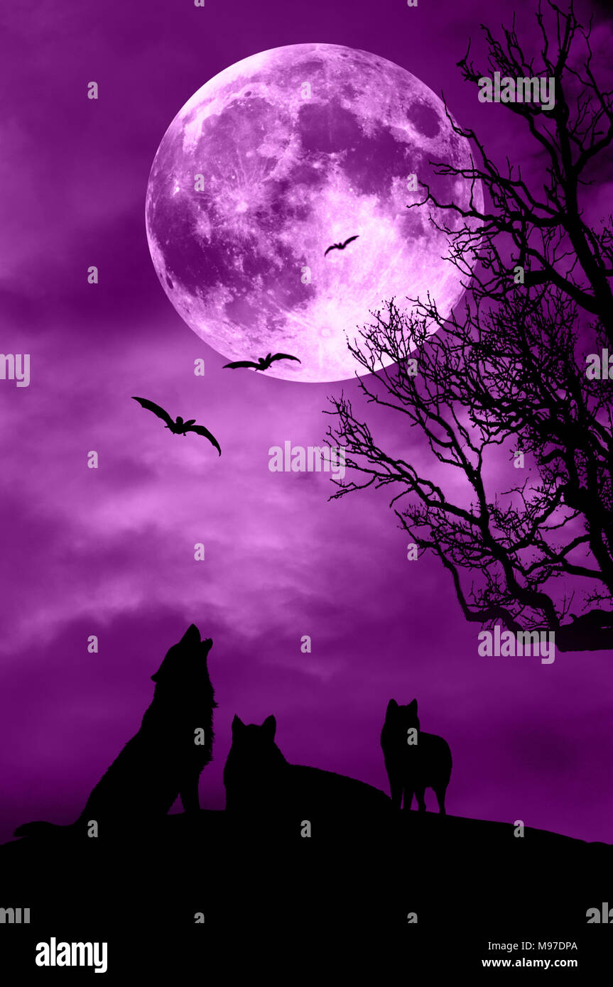 Paquete De Lobos Murciélagos Y Luna Llena La Noche De Halloween Noche de lobos