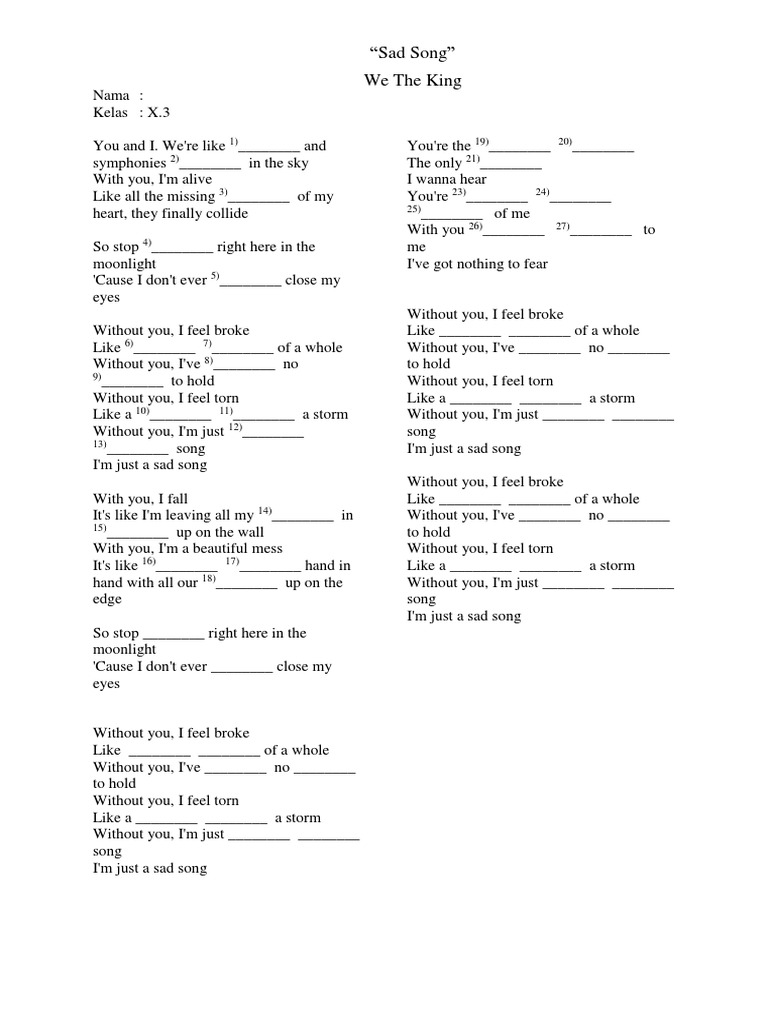 Sad Song 2 Lyrics We The Kings