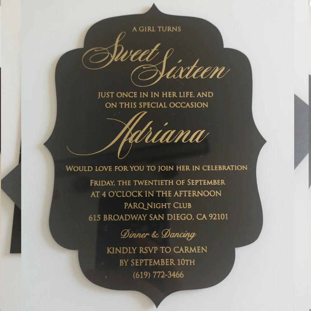Free Design Custom Shape Gold Foil Acrylic Card Wedding Invitation Card With Pocket Envelope Black Acrylic Card With Gold Foil Cards Invitations Aliexpress